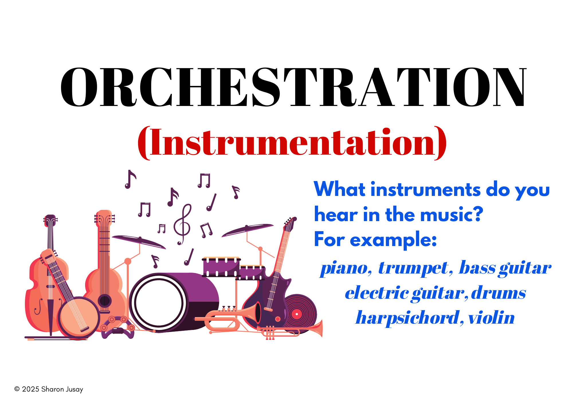 A blank chart is available here for students to practise filling in description/s for each music element in the piece.